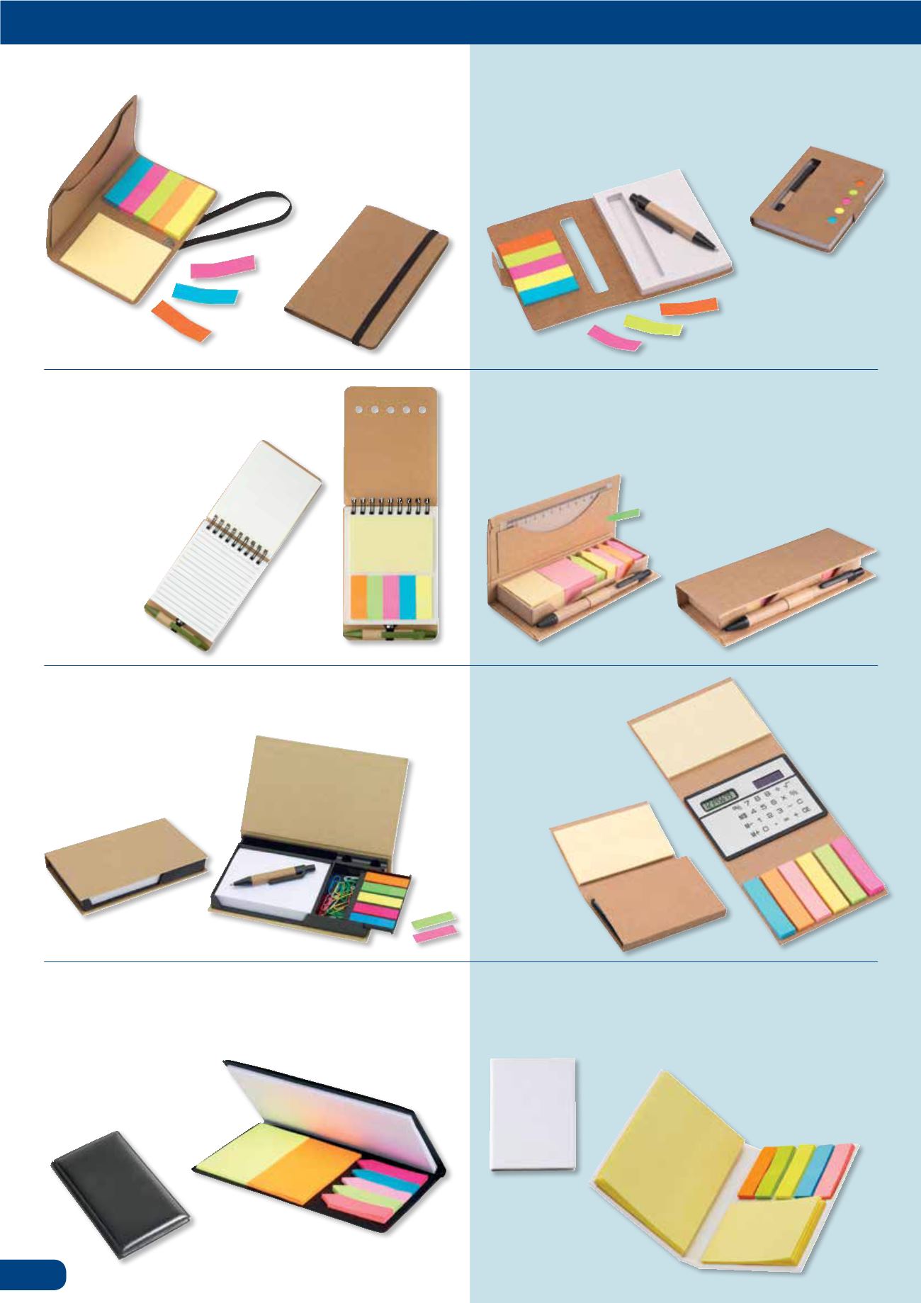 Blocchetto con 120 foglietti, penna graffette e memostick.