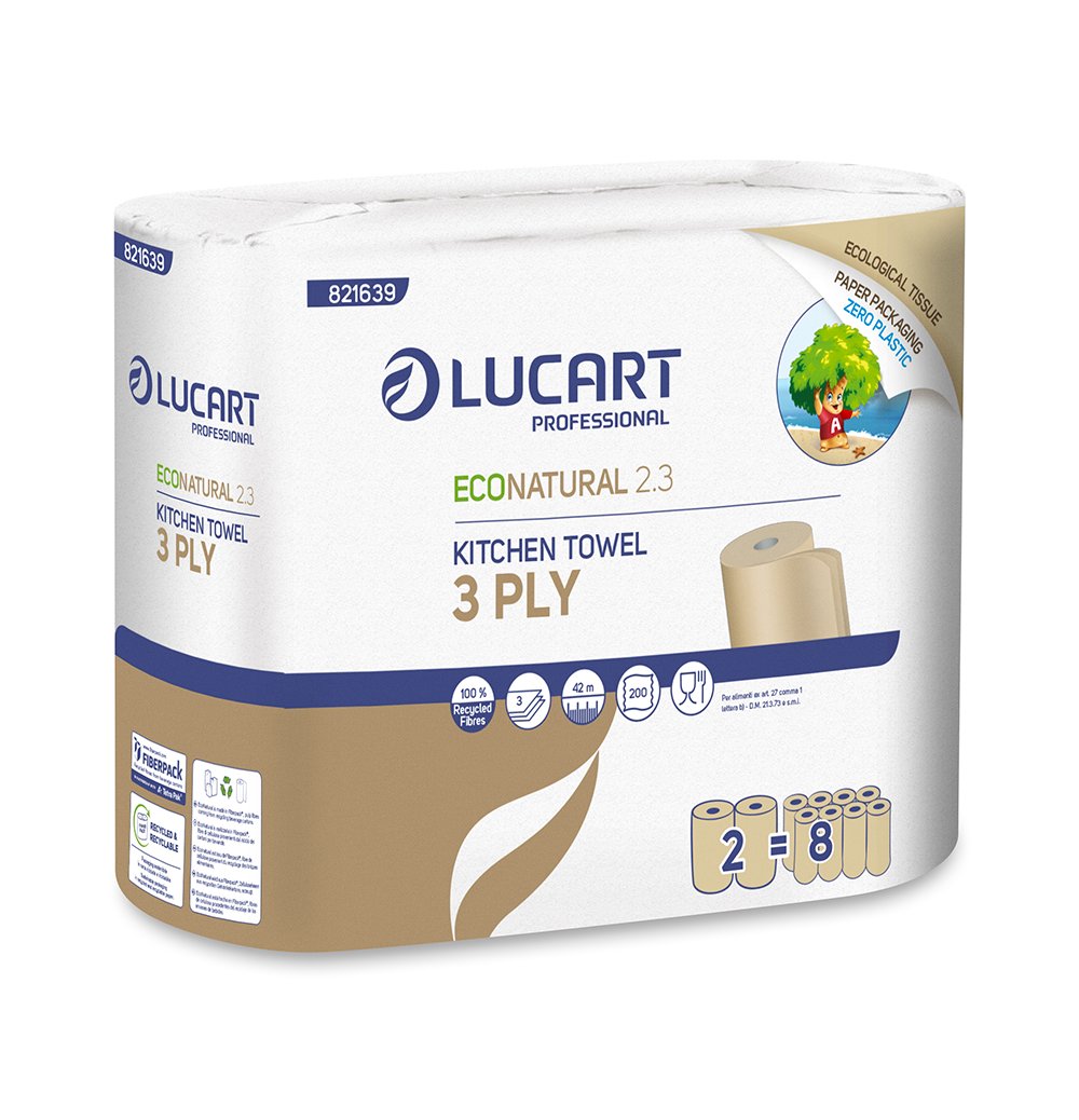 2 Rotoli Asciugatutto 3 Veli 200 Strappi, in Carta Ecologica EcoNatural EX50001534