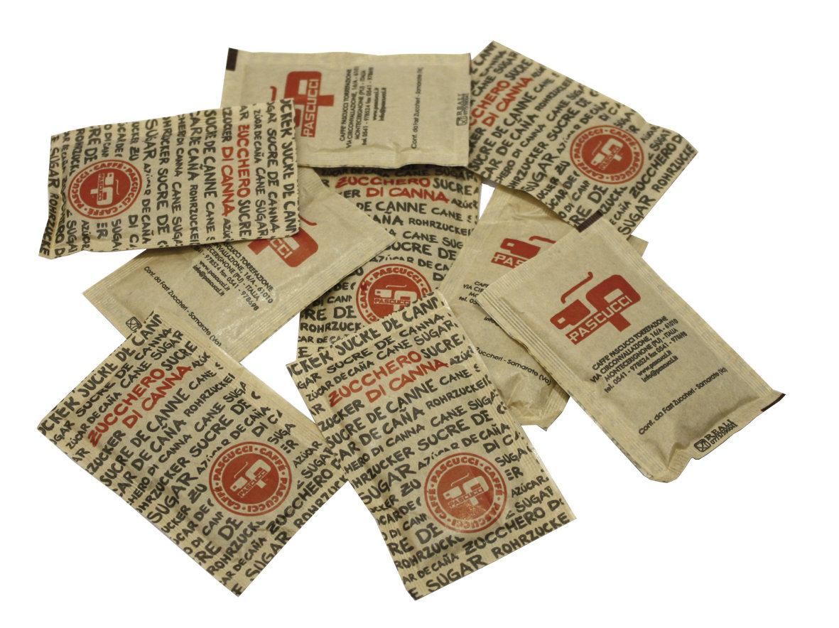 Palettine in plastica, zucchero e dolcificanti per caffè e bevande calde
