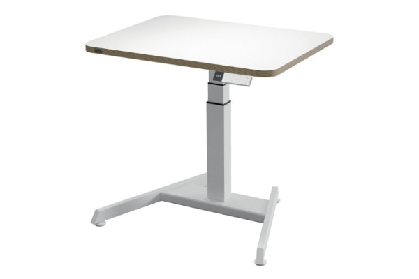Scrivania Compatta Elettrica Sit-Stand con Ruote, Salvaspazio, Bianca