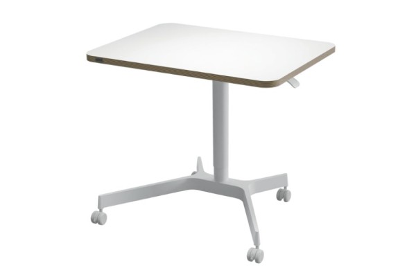 Scrivania Compatta Sit Stand con Ruote, Regolazione in Altezza Pneumatica, Salvaspazio, Bianca