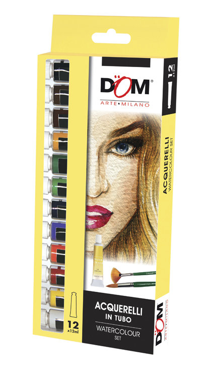 Colori acquerello con pigmenti di alta qualità per artisti e studenti. Acqurelli in tubo, confezione da 12 tubetti con capacità 12 ml ciascuno.