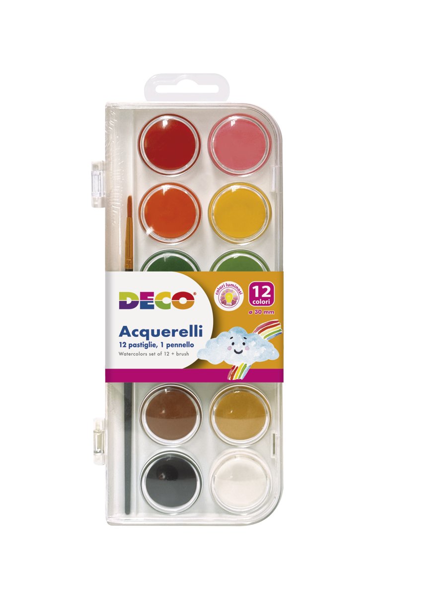 Confezione 12 acquerelli in pastiglia da 3 cm di diametro
