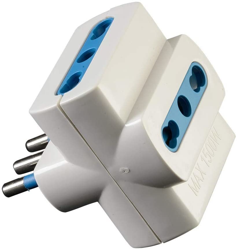 Adattatore con spina e prese di Tipo L (Italiana a 3 poli) secondo lo standard italiano CEI 23-16/VII da 10 e 16 Ampere