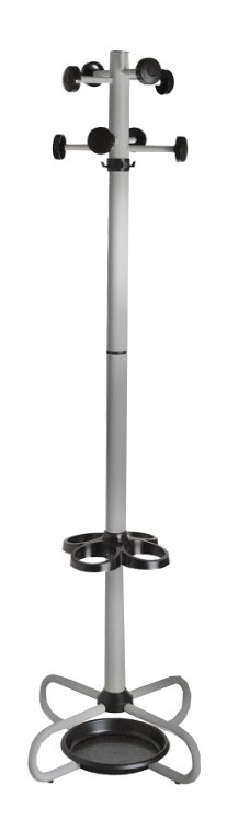 Appendiabiti 8 posti in acciaio verniciato o cromato con porta ombrelli e pomi in plastica nera. Dimensioni: diametro base ø 55cm. Altezza 174cm