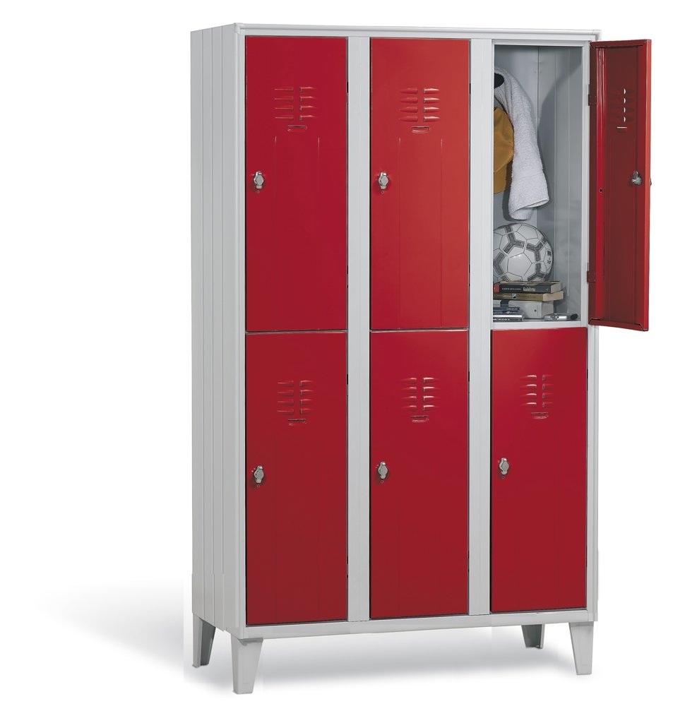 Armadio spogliatoio sovrapposto su piedi. Struttura portante realizzata in lamiera d'acciaio profilata prima scelta spessore 6/10.