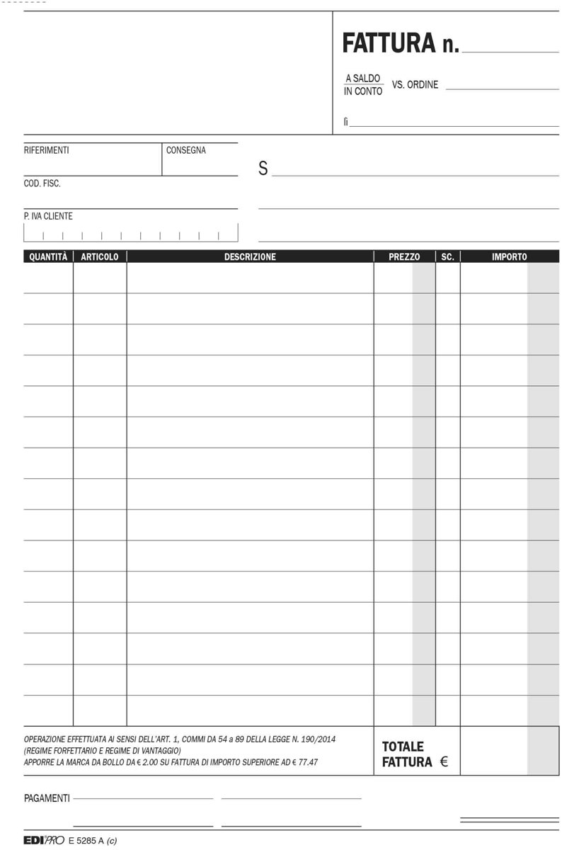 - BL FATTURA CONTRIBUENTI MINIMI E FORFETTARI