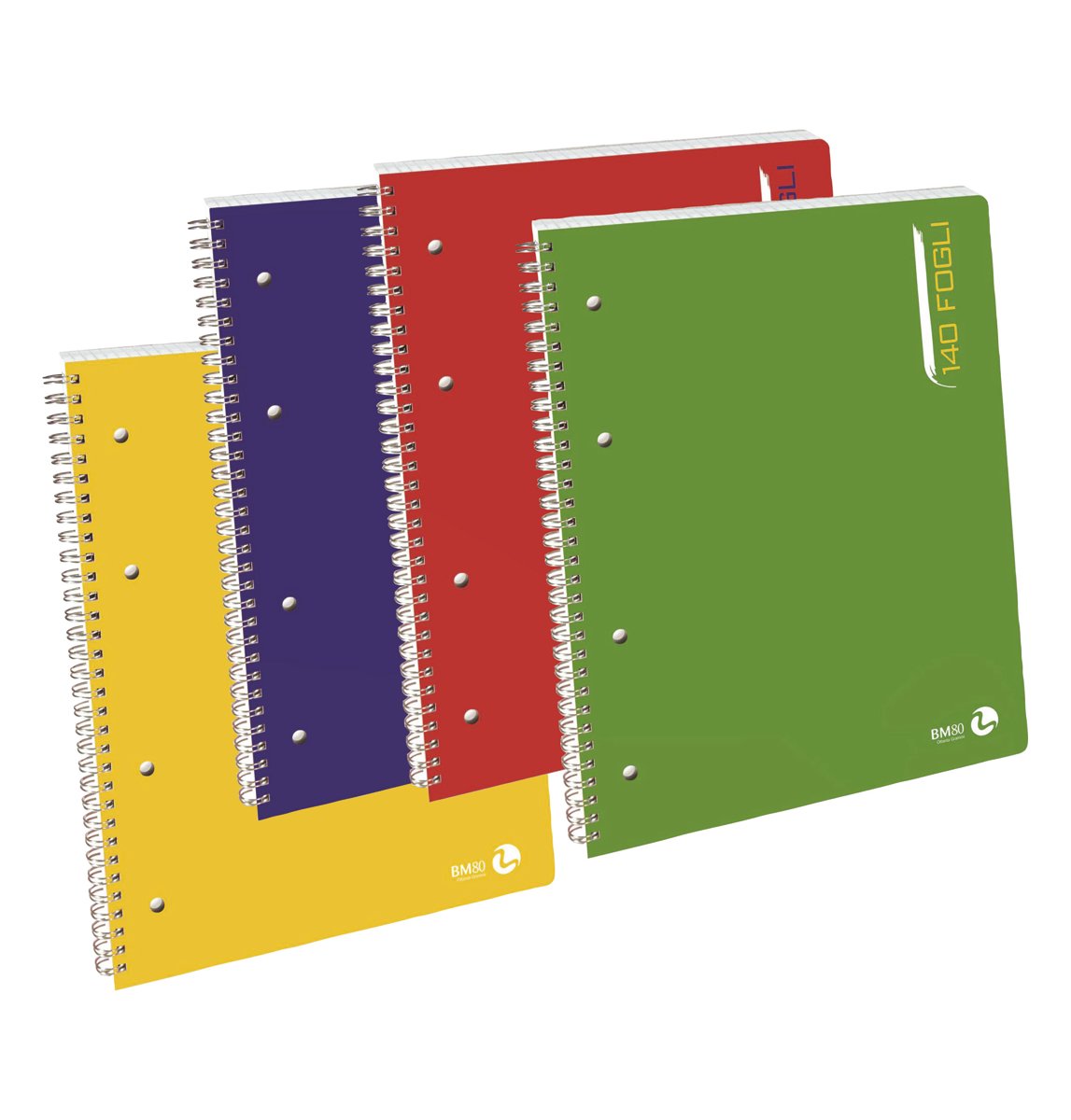 Blocco Fogli a Quadretti con Spirale, 140 Fogli, 4 Fori, Strappo, Plastificato