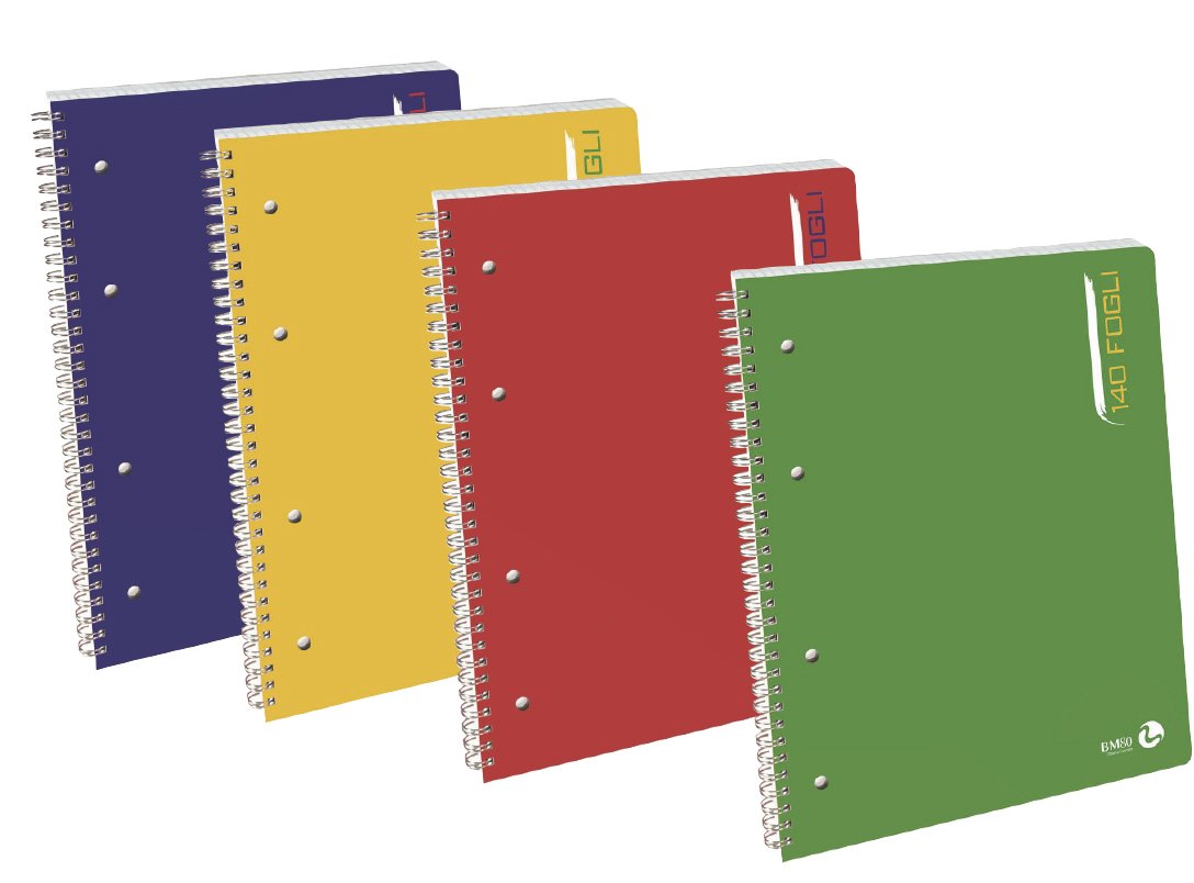 Blocco Fogli a Quadretti con Spirale, 140 Fogli, 4 Fori, Strappo, Plastificato