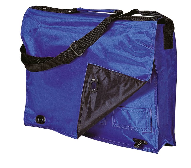 Borsa in nylon con maniglia e tracolla • parte interna attrezzata con numerose tasche • blu con interno e tracolla nera