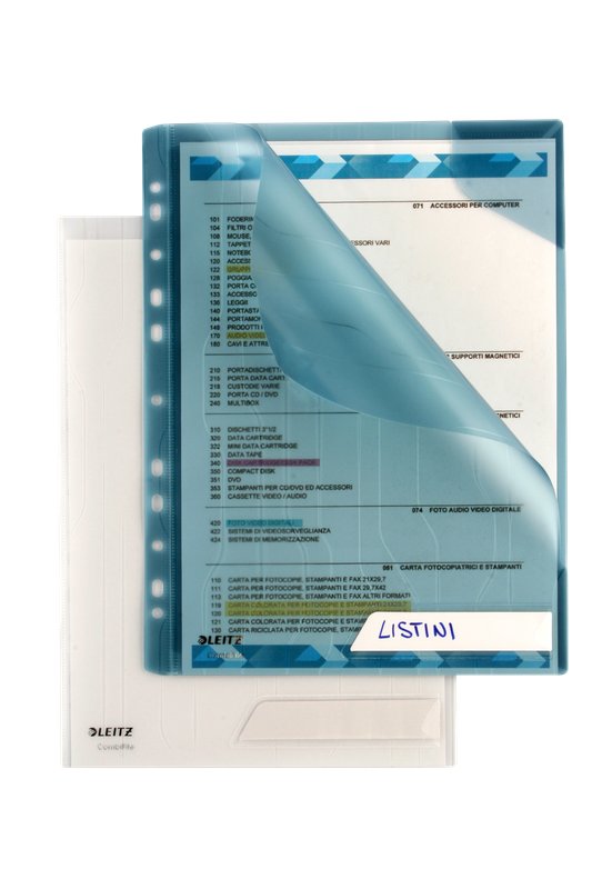 Busta a L con angolo superiore di chiusura e saldatura parziale del lato lungo per evitare la fuoriuscita dei documenti • speciale banda a fori multipli a scomparsa • etichetta personalizzabile • finitura satinata • formato esterno cm 22,3x31,3 • formato utile cm 22x30