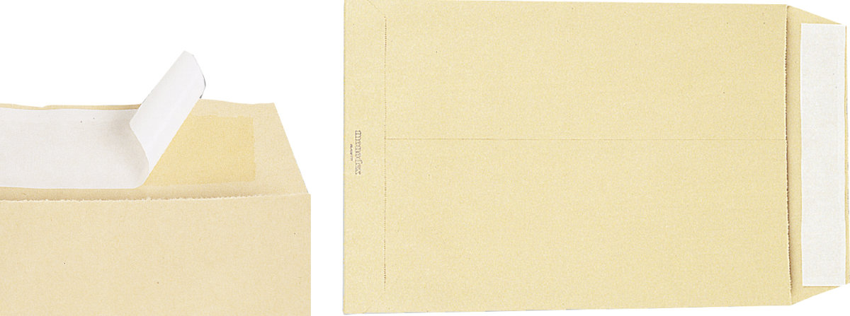 Realizzate in carta Kraft, con chiusura a strip e soffietto sui 2 lati per aumentare la capacità fino a 4 cm