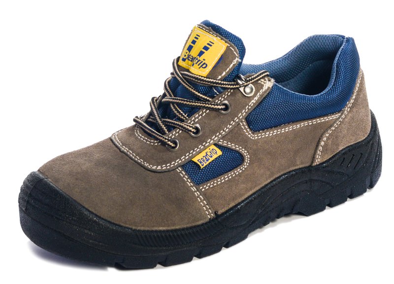 ISO EN20345:2011 Pelle scamosciata marrone con inserti Blue Navy in Nylon 600 DIN • lacci arrotondati con 3 occhielli e un gancio superiore • linguetta imbottita • fodera in cambrella • soletta interna anatomica antistatica • puntale e suola in acciaio • con battistrada nero in PU a doppia densità • resistente agli oli • Certificata S1P SRC