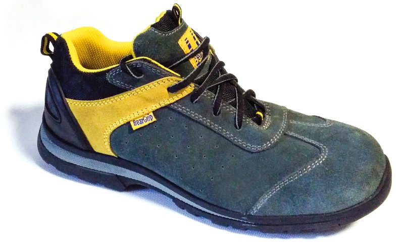 ISO EN20345:2011 Calzatura leggera e confortevole • tomaia in pelle scamosciata con fori traspiranti • battistrada in gomma certificato SRC HRO • profilo con rinforzo nella zona del tallone • puntale in composito • lamina in tessuto antiperforazione • completamente metal free