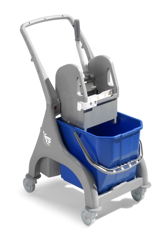 Lo strizzatore, il secchio e lo spazio retrostante, riservato al trasporto di flaconi e attrezzi vari, completano il prodotto studiato esplicitamente per il lavaggio del pavimento
