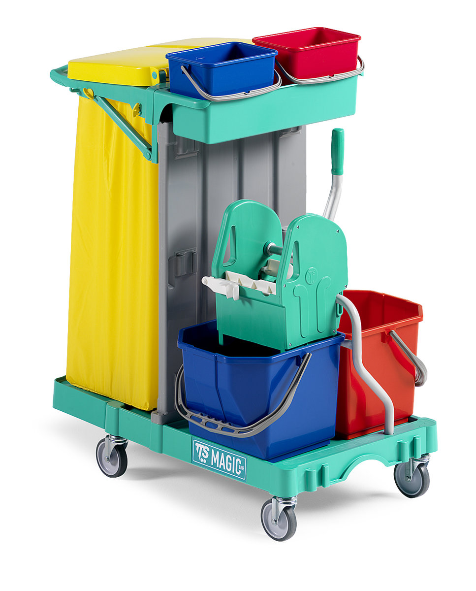 Igienico: i montanti in plastica separano nettamente i moduli del carrello evitando contaminazioni tra la zona di lavaggio, stoccaggio e raccolta rifiuti