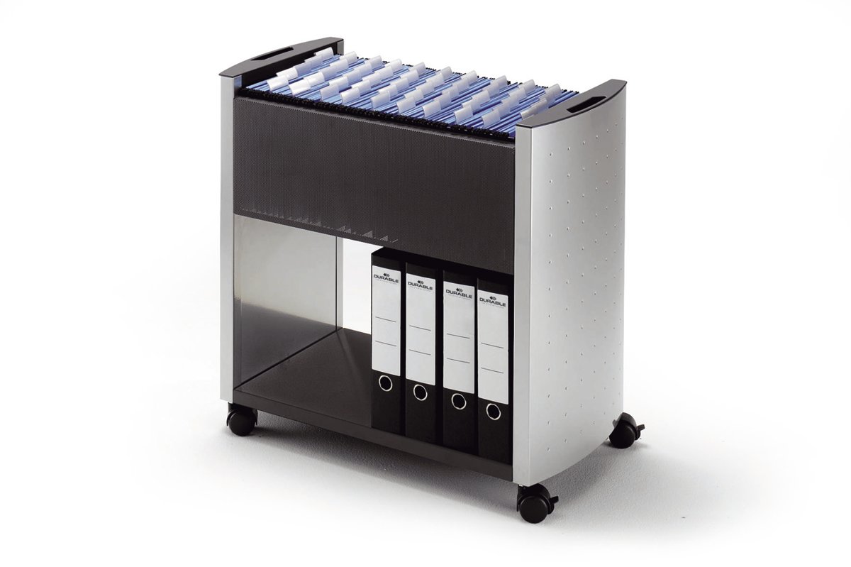 Consegna al piano in 15gg lavorativi - Realizzata in acciaio con rivestimento epoxy poliestere che fornisce una protezione resistente ai graffi. Dotato di pannelli laterali curvi in metallo con decorazione ad effetto forato e prese antiscivolo su entrambi i lati. Provvisto di vano inferiroe che offre ulteriore spazio di archiviazione. Fornito di 4 ruote pivottanti, di cui 2 provviste di dispositivo di bloccaggio. Minuteria e istruzioni di montaggio incluse nella confezione. Capacità 80 cartelle sospese. Interasse cm 33- Dimensione L74xP38xH70 - www.divaoffice.com