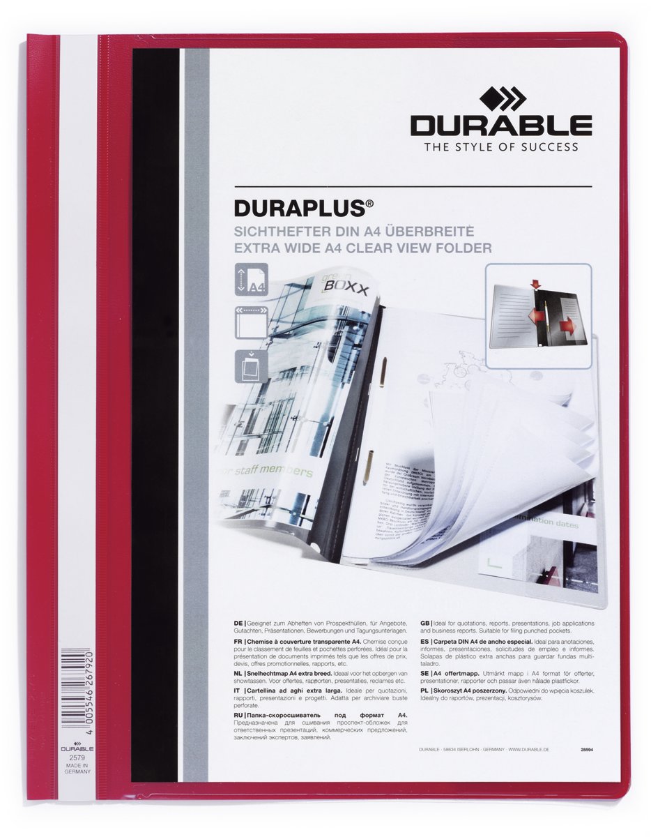 Cartellina ad aghi di alta qualità, per documenti formato A4, con copertina frontale trasparente personalizzabile ed inserto dorsale personalizzabile sull'intera lunghezza