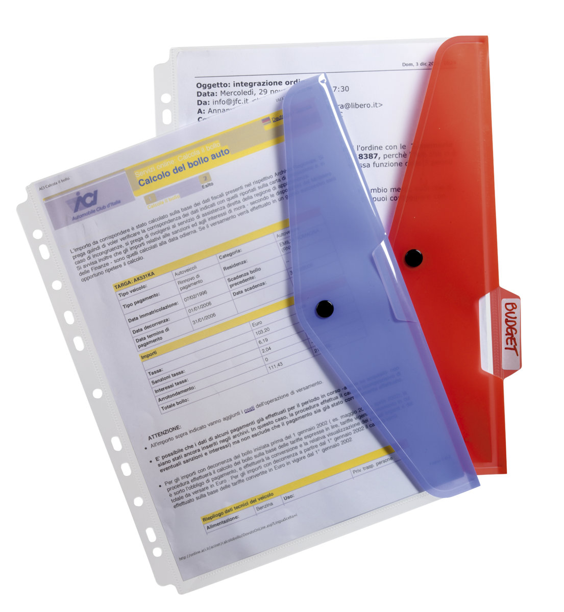 Dotate di patella colorata con bottone a pressione che evita la fuoriuscita dei fogli