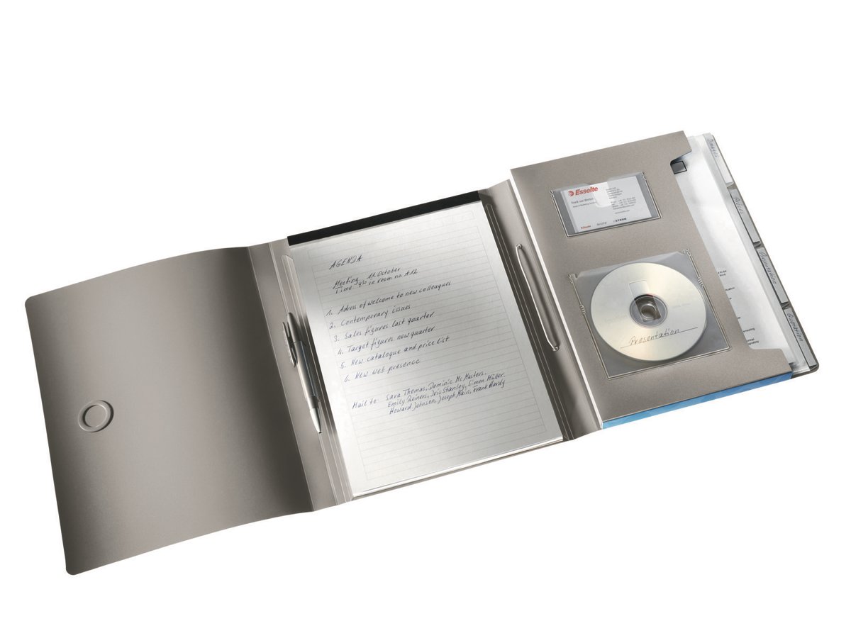 tasca porta cd, tasca porta biglietti da visita, e portapenna. Ampio vano porta