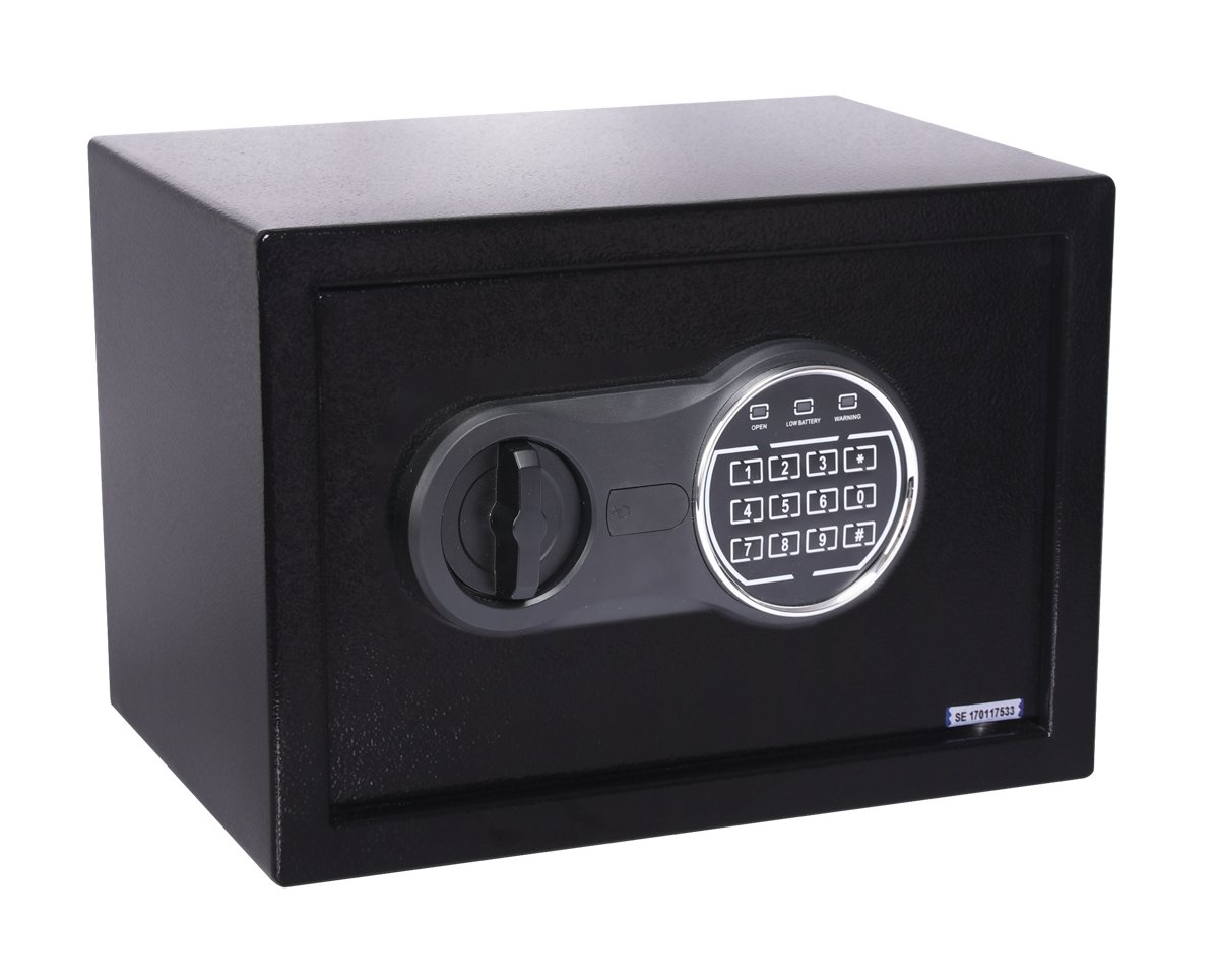 Cassaforte di sicurezza per la custodia di oggetti di valore e contanti dotata di chiusura elettronica e di due chiavi di emergenza