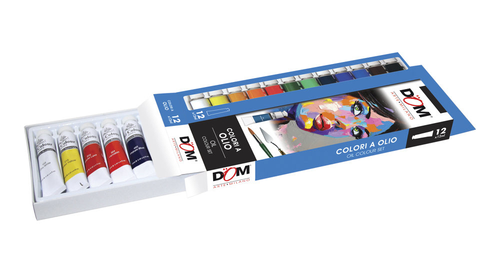 Colori a olio fabbricati con pigmenti di prima qualità e testati al fine di ottonere colori brillanti e intensi. Scatola da 12 tubi di capacità 12 ml ciascuno. Colori assortiti.