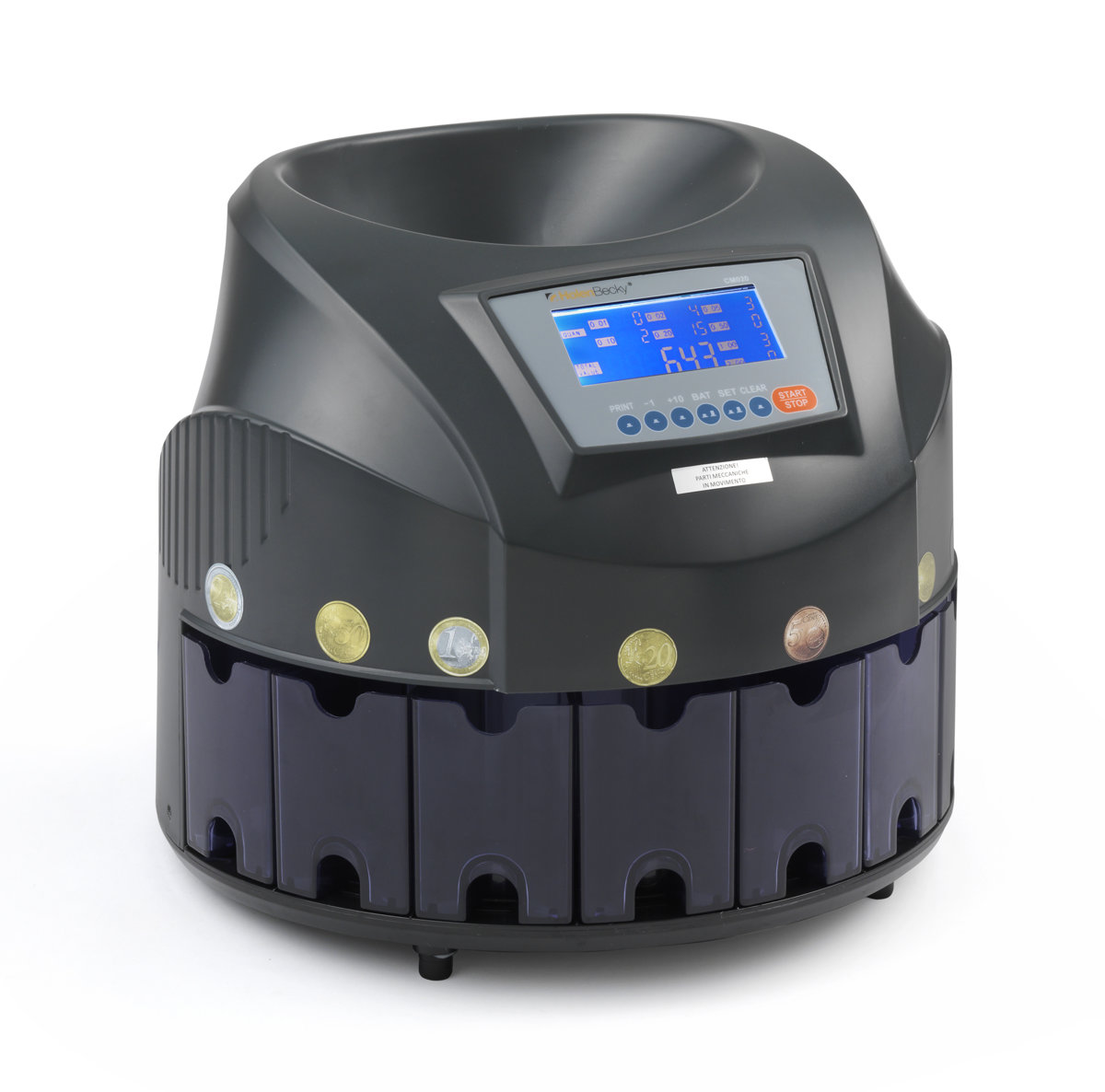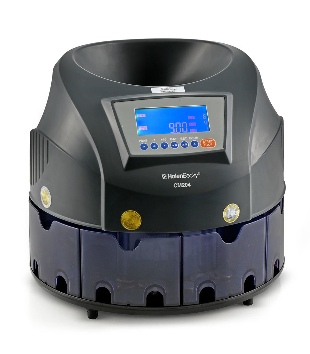 Conta e divide tutte le monete (euro) velocemente in 8 cassetti (CM020) o in 4 cassetti (CM204)