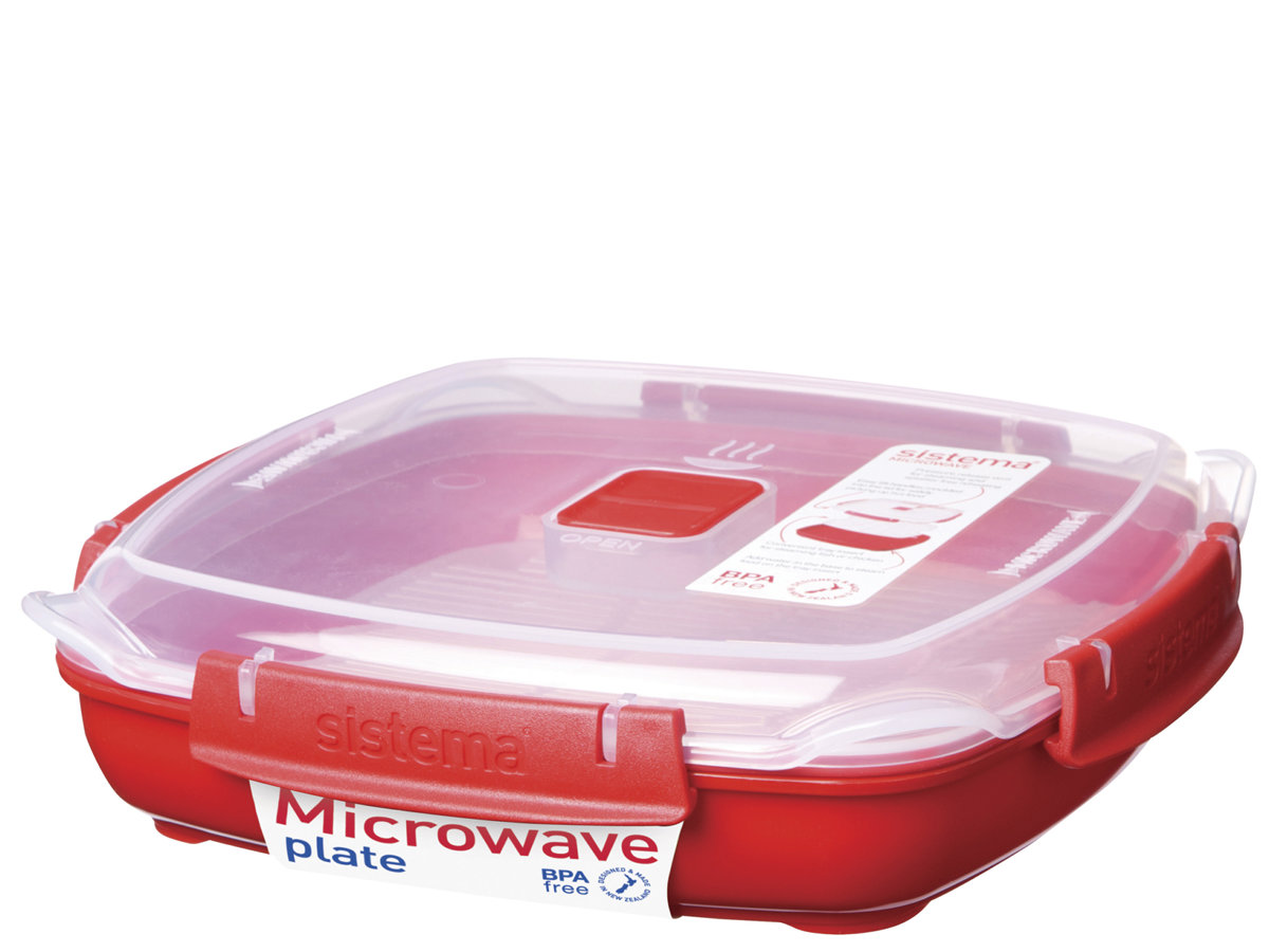 E' sufficiente aprire lo sfiato del vapore sul coperchio e passarlo nel forno a microonde per scongelare e riscaldare il cibo contenuto