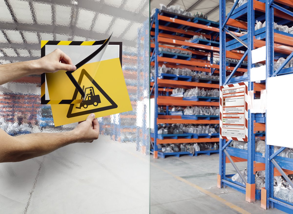 Cornice espositiva adesiva ideale per esporre tutte le tipologie di segnaletica di sicurezza e di pericolo