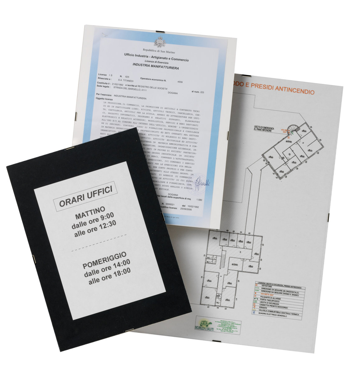 Porta fotografie e non solo, utili per esporre documenti, orari di apertura/chiusura, licenza di attività, segnaletica di sicurezza, le immagini di copertina delle tue riviste, dei tuoi cataloghi e tanto altro ancora