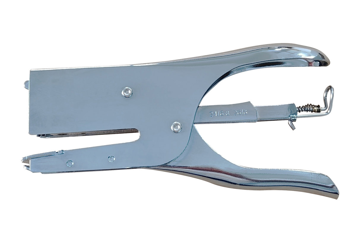 Cucitrice manuale a pinza in acciaio cromato con spingipunto posteriore