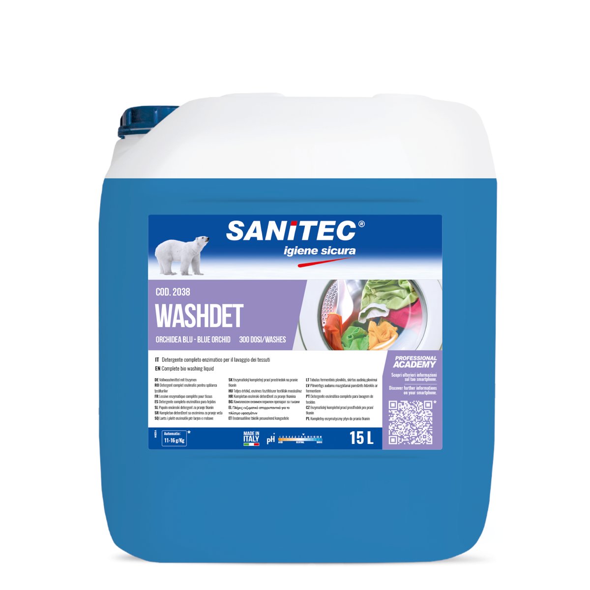 Detergente liquido completo per il lavaggio professionale in lavatrice dei capi bianchi e colorati