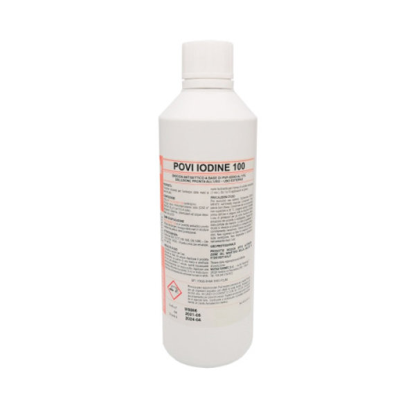 POVI IODINE 100 è una soluzione acquosa pronta all'uso a base di Iodopovidone in concentrazione pari al 10% solo per cute integra e non per cute lesa