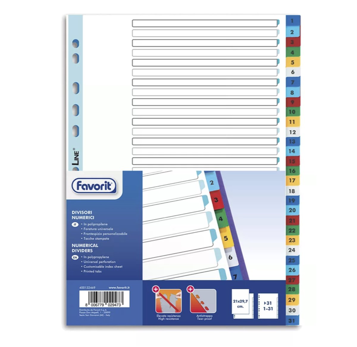 Disponibile la tipologia con 12 linguette scrivibili oppure con 31 linguette numeriche