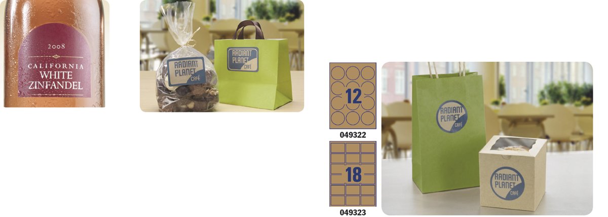 Sono stampabili fino al bordo per poter dare un fondo completamente colorato ai prodotti da etichettare; la versione in carta Kraft è stampabile con tecnologia laser e inkjet mentre quella in lino è stampabile con tecnologia laser