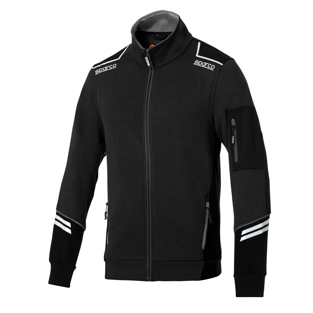 Tasche laterali e su manica con chiusura a zip rovesciata.