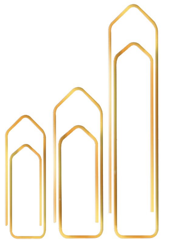 Fermagli ottonati color oro • confezione assortita in tre diverse misure: nr 2 lunghezza mm 26, nr 4 lunghezza mm 32, nr 5 lunghezza mm 45 • punte triangolari • conf. gr 500