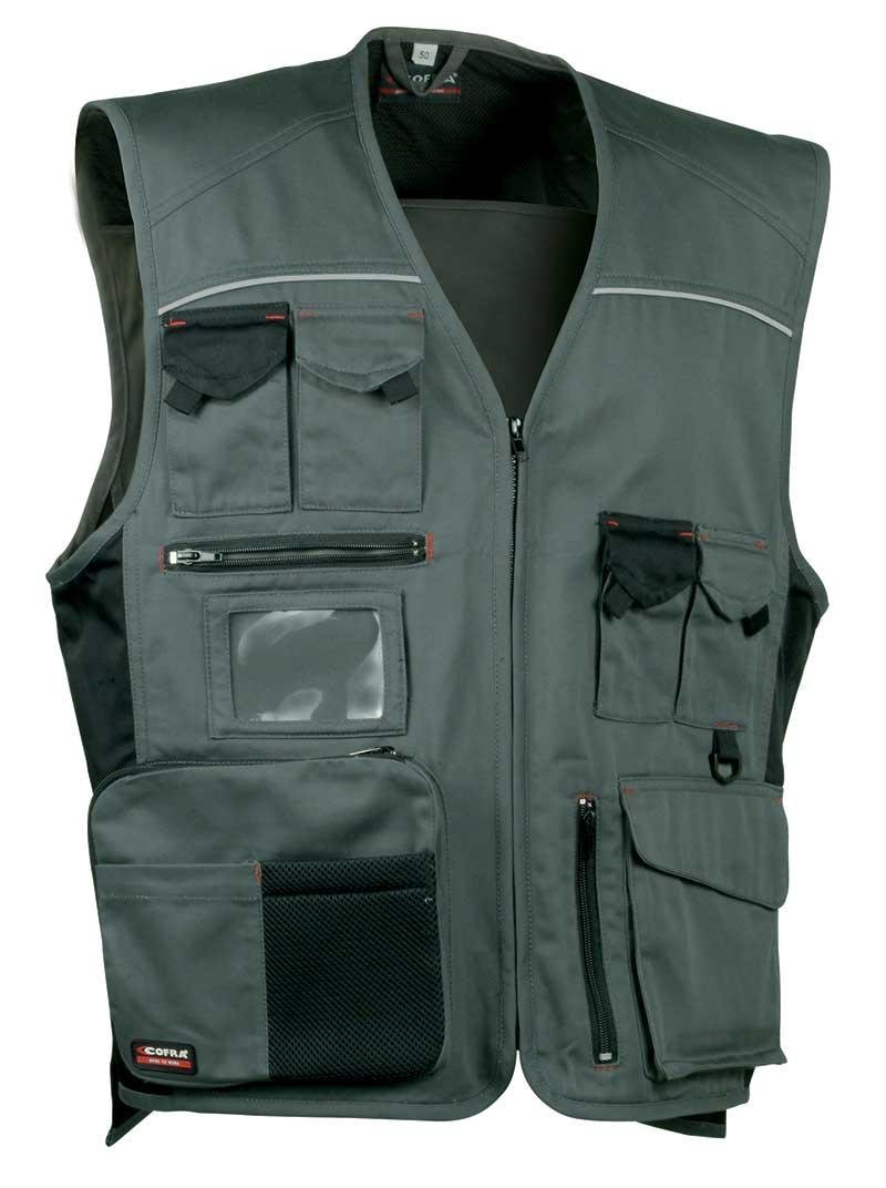 zip, 2 tasche sul petto, 3 tasche con zip, 4 taschini, portabadge, spacchetti