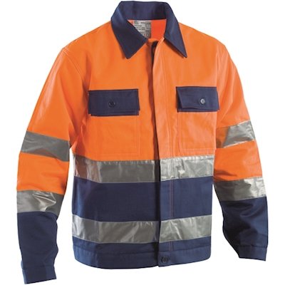 Tessuto fluorescente: poliestere 40%, cotone 60%, fustagno peso 350 gr/mq