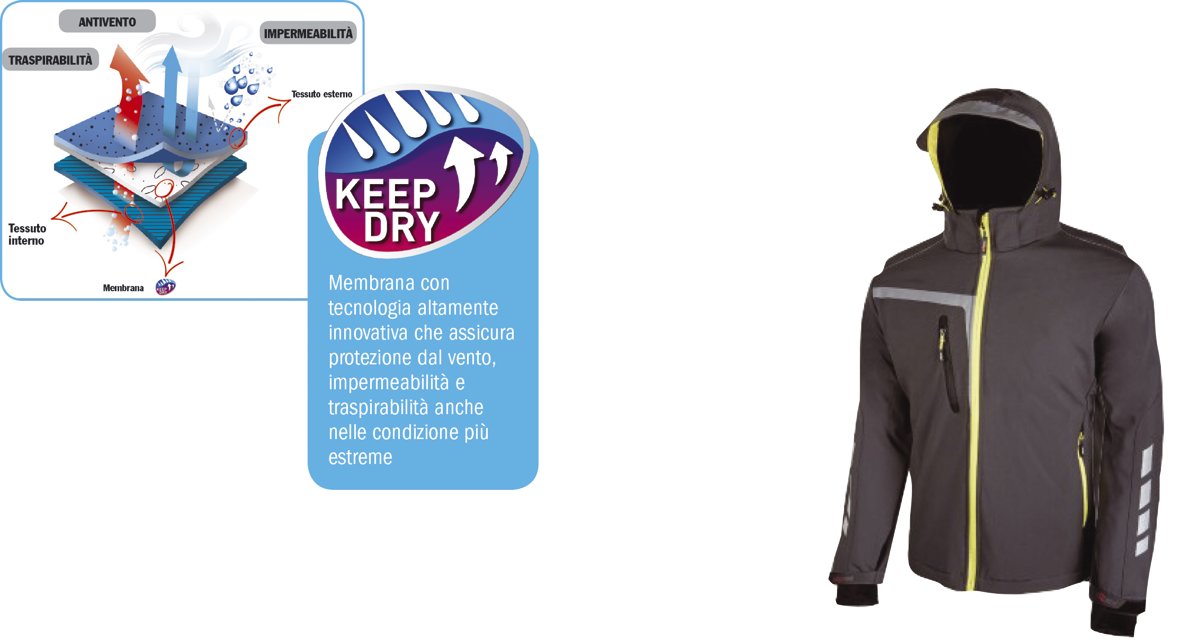 Giacca in tessuto Soft Shell stretch traspirante antivento e idrorepellente