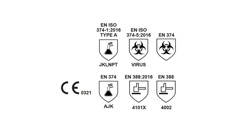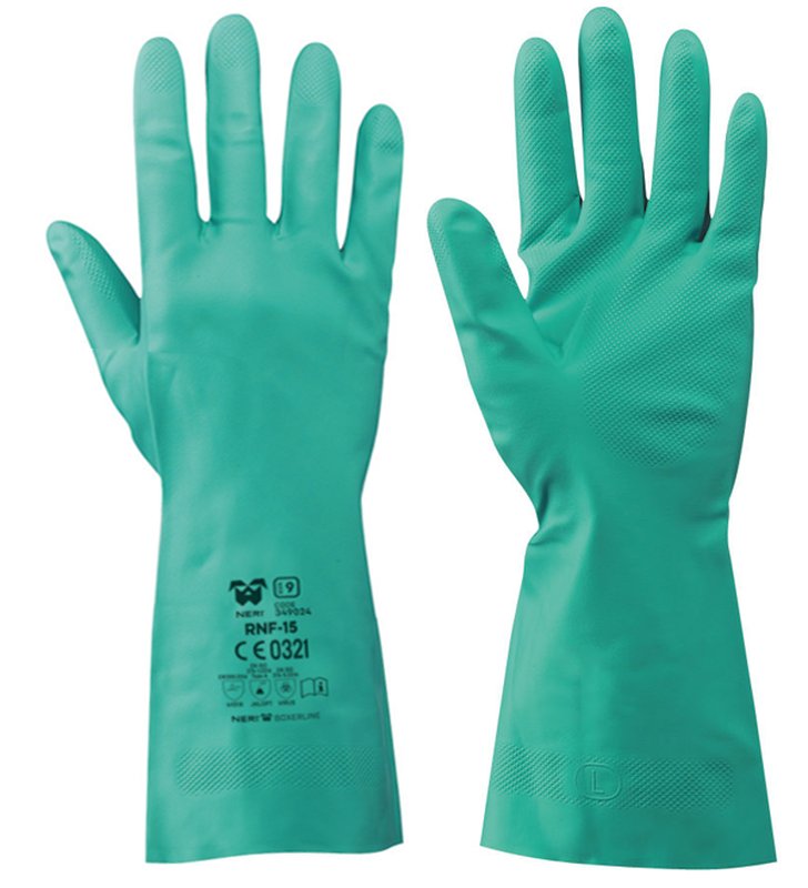 Guanto in nitrile • internamente floccato in cotone per un miglior comfort e assorbimento della traspirazione • zigrinatura esterna antiscivolo per una miglior presa sia in ambienti asciutti che umidi • senza silicone • confortevole e resistente • elevata resistenza all’abrasione e maggiore resistenza alla perforazione rispetto ai guanti in lattice • lunghezza cm 33 circa • spessore mm 0,40
