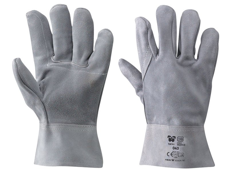 Guanto in crosta groppone • palmo e dita totalmente rinforzati all’interno • manichetta di sicurezza in crosta cm 7 • qualita? extra • ottima presa • lunghezza cm 26 circa