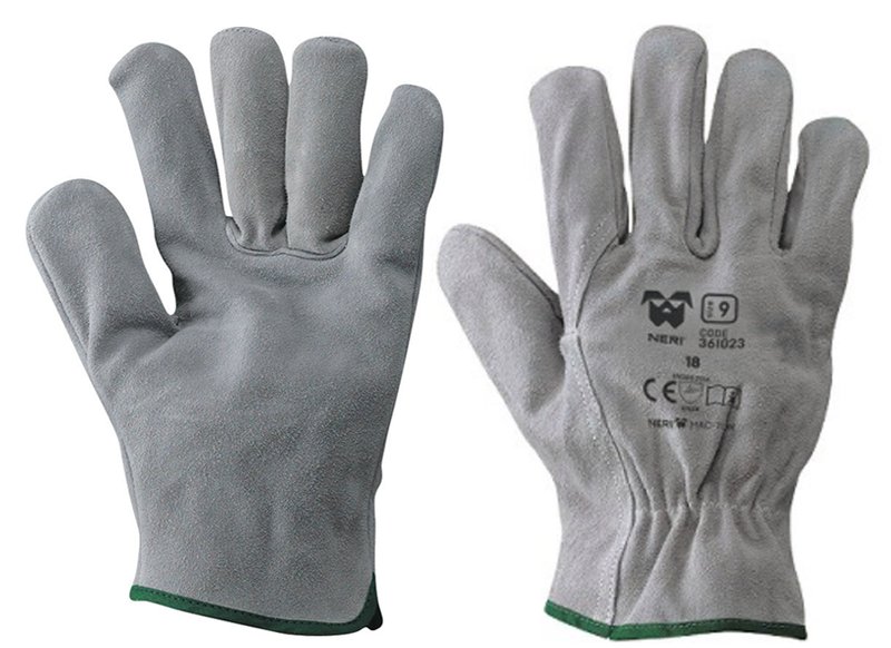 Guanto in crosta bovina • orlato • elastico stringi polso interno