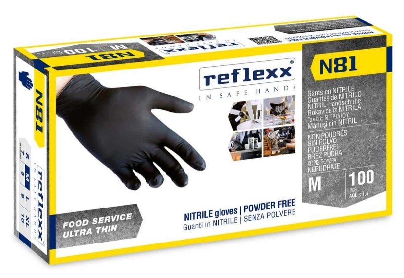 Guanti Monouso In Nitrile Neri Senza Polvere Reflexx N81