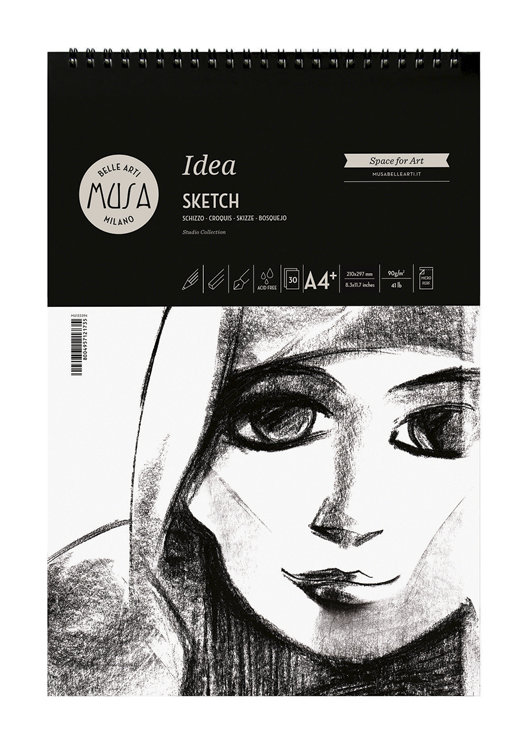 Idea è una carta per schizzo bianca naturale, a grana media, prodotta con cellulosa di alta qualità