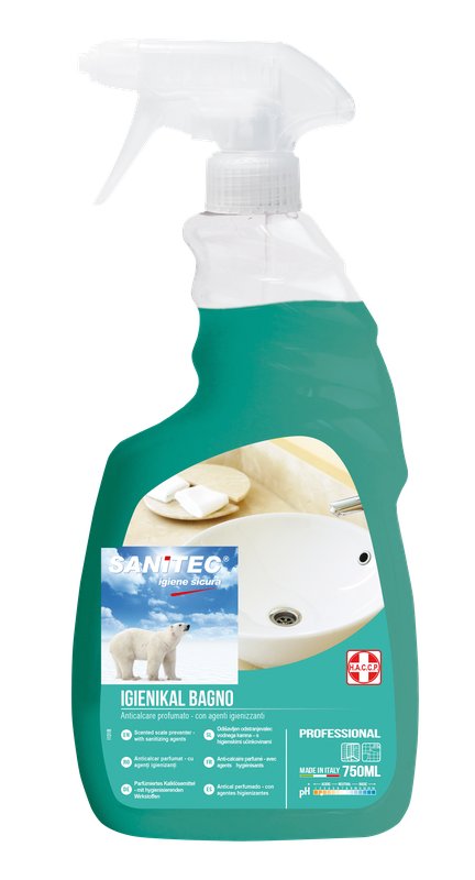 Detergente disincrostante profumato scioglicalcare formulato per rimuovere sporco, calcare e residui di sapone da tutte le superfici senza intaccare le cromature • azione igienizzante grazie ai sali d’ammonio quaternario. Modalità d'uso: spruzzare e distribuire il prodotto uniformemente utilizzando una spugna o panno pulito, poi risciacquare • per sporco ostinato lasciare agire qualche minuto.