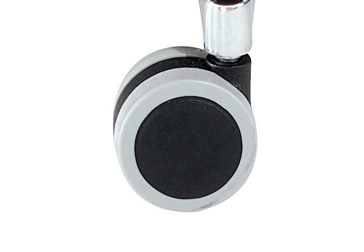 Indicate per pavimenti duri; utilizzabili trasversalmente su tutte le sedute con base a 5 razze con perno di fissaggio diametro 11mm; frenate, realizzate in nylon con battistrada in gomma, diametro 50mm