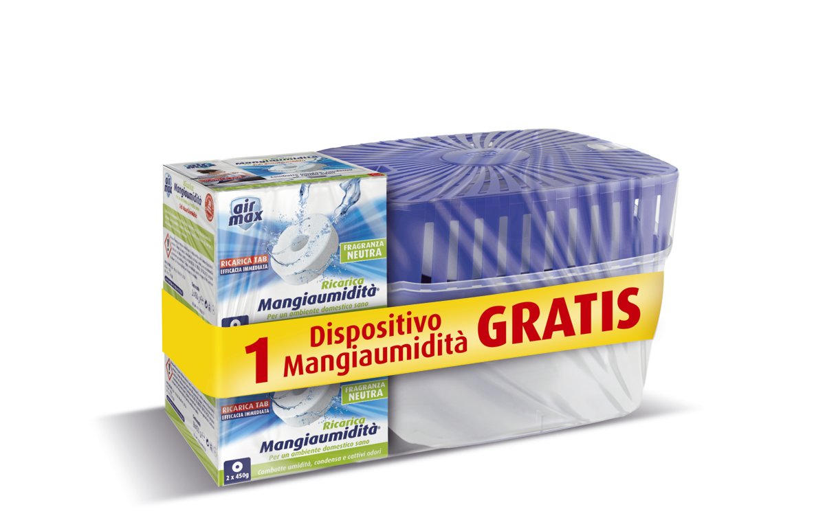Kit Assorbiumidità Air Max, l'Originale Mangiaumidità in Vaschetta con 2 Ricariche da 450 gr cad.