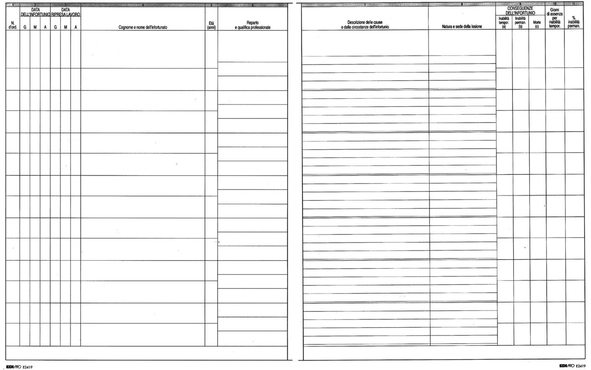 Registro per la registrazione cronologica, obbligatoria, di tutti gli infortuni occorsi ai lavoratori che comportino un'assenza dal lavoro superiore ai tre giorni