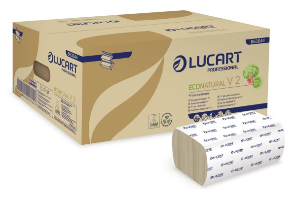 Asciugamani Monouso EcoNatural Piegati a "V", 3800 Pezzi, 100% Carta Riciclata Avana 0681267
